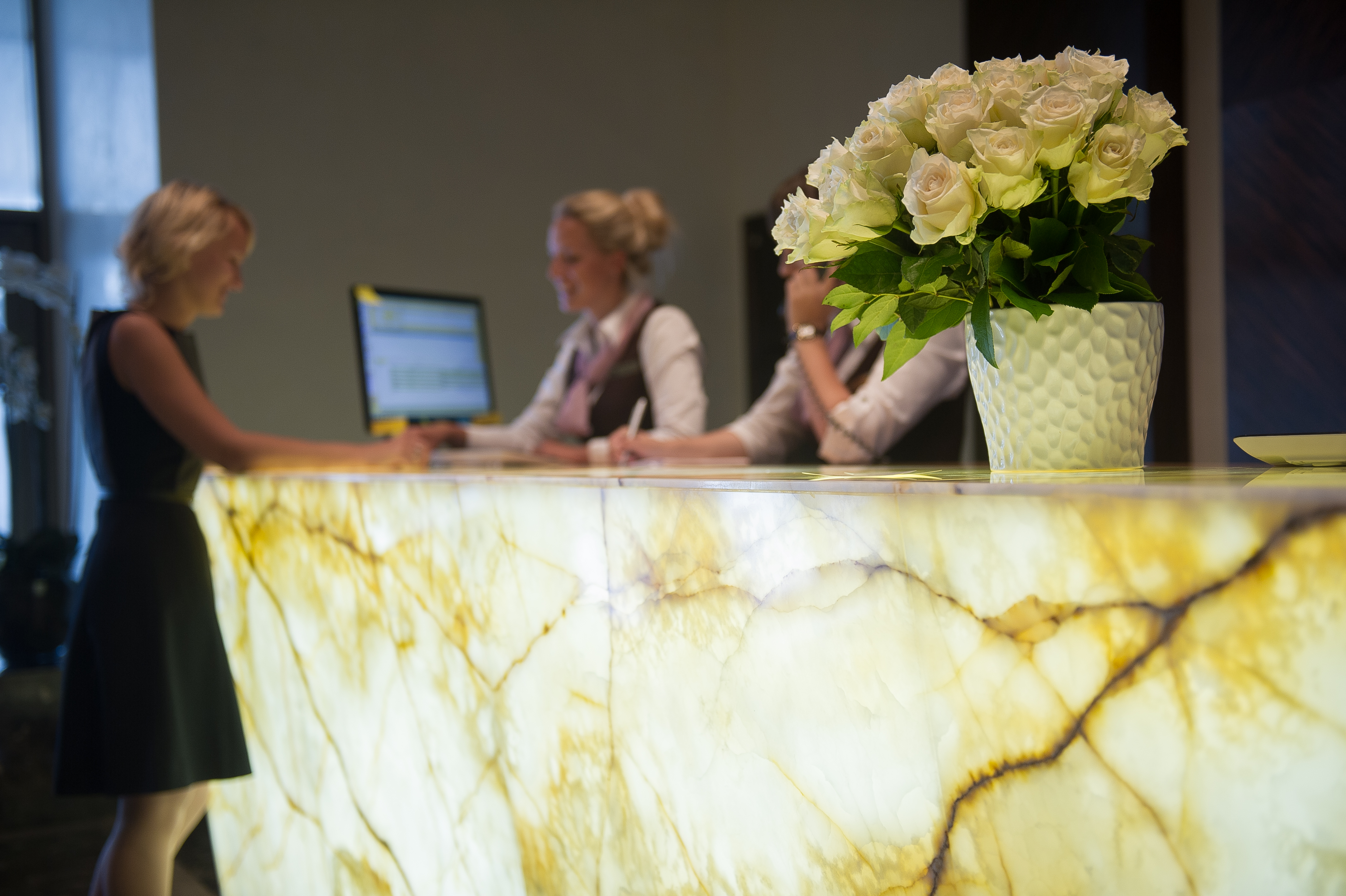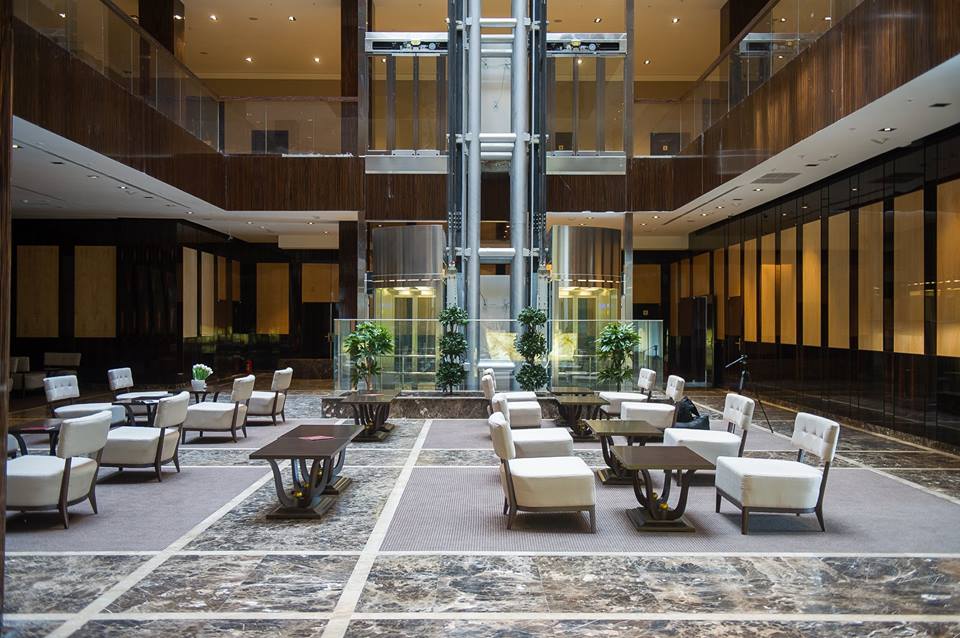 The hotel's facilities include 3 modern equipped conference halls, with areas of 84 square metres, 91 square metres and 163 square metres respectively, that are able to cater for between 60 to 160 guests; and a restaurant for 100 covers, a bar, a café, and a fitness centre with pool and a spa-salon. The building’s facade has been constructed using natural travertine, whilst the interior of the common areas, together with some rooms, are lined with Spanish marble. The interiors were designed in cooperation with well-known Russian and international design agencies; decoration includes natural materials from the best international manufacturers.
